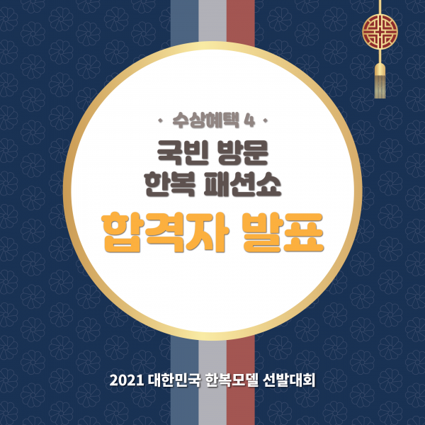 수상 후 1년동안 비교불가 수상혜택을 제공하는 대한민국 한복모델 선발대회에서 준비한 "국빈방문 한복 패션쇼" 합격자 안내드립니다.