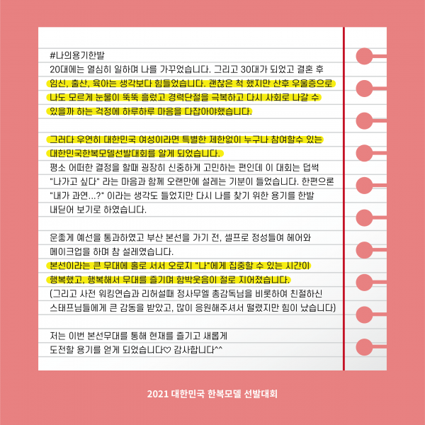 ◦ 2021 대한민국 한복모델 선발대회 본선진출자