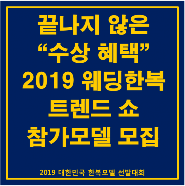 "2019 웨딩한복 트렌드 쇼"에 참여하실 한복모델께서는 신청해주시길 바랍니다.