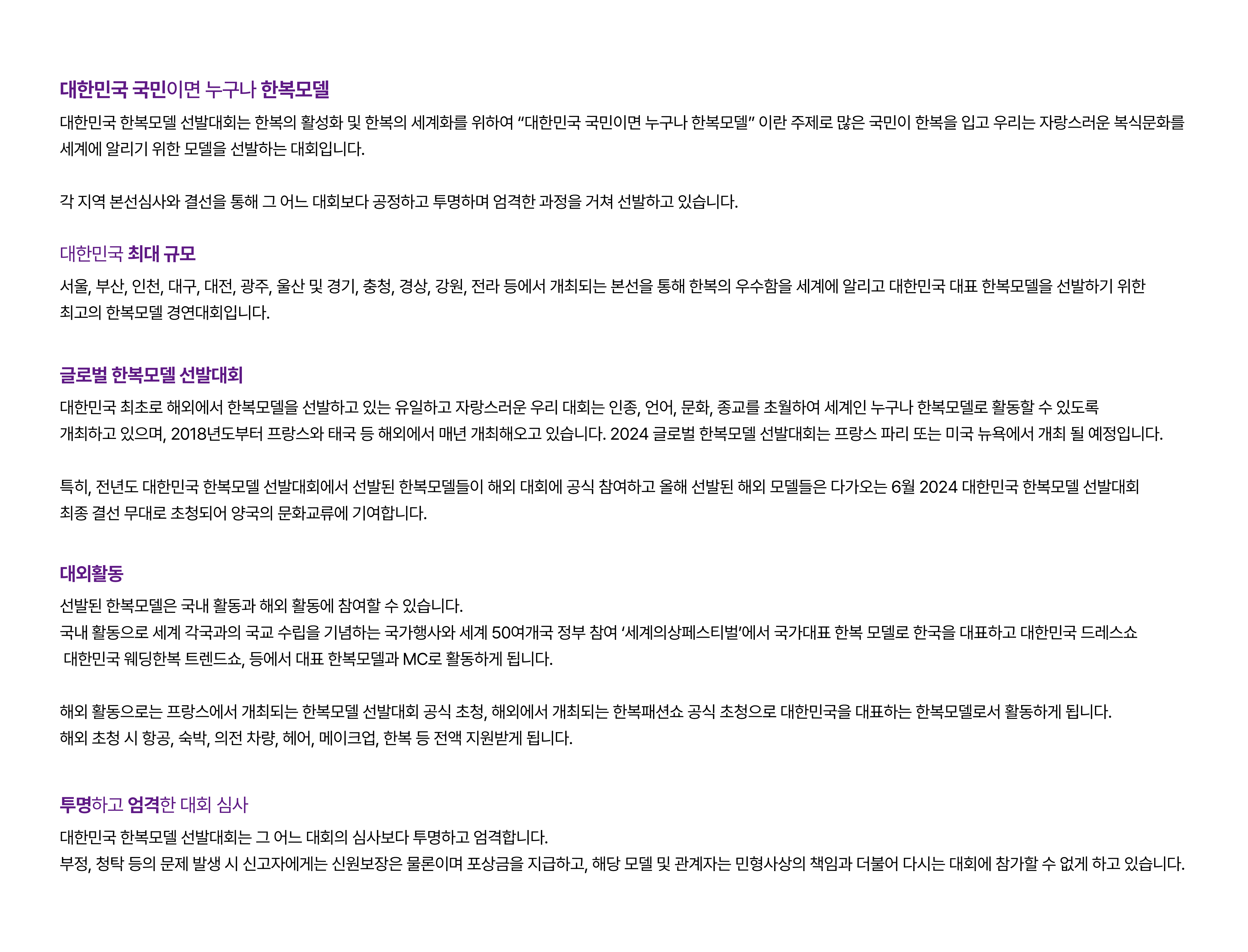 모든 게시글 및 이미지의 저작권은 대한민국 한복모델 선발대회 조직위원회에 있으며 본 조직위원회는 해당 민형사 소송에 있어 철저한 불관용 원칙을 적용합니다.
