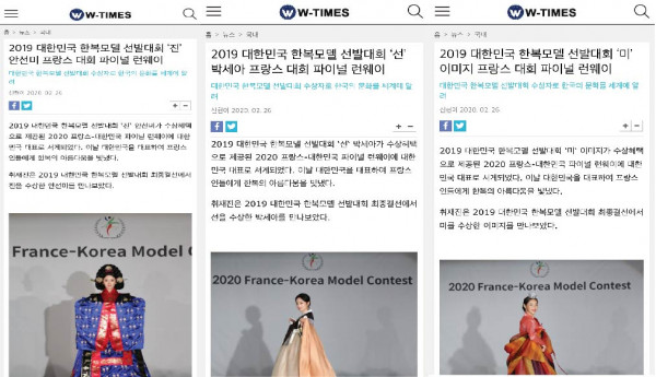[수상혜택] 2020 대한민국 한복모델 선발대회 진선미, 2020 프랑스-대한민국 파이널 런웨이 언론보도